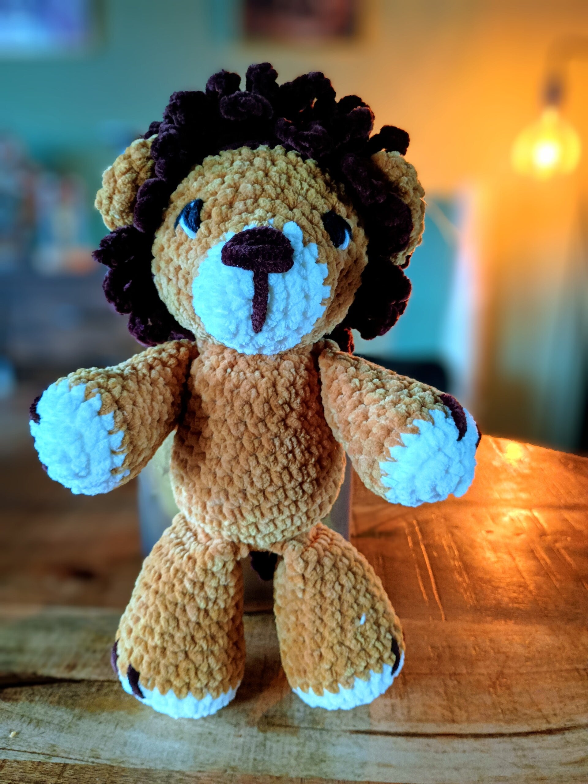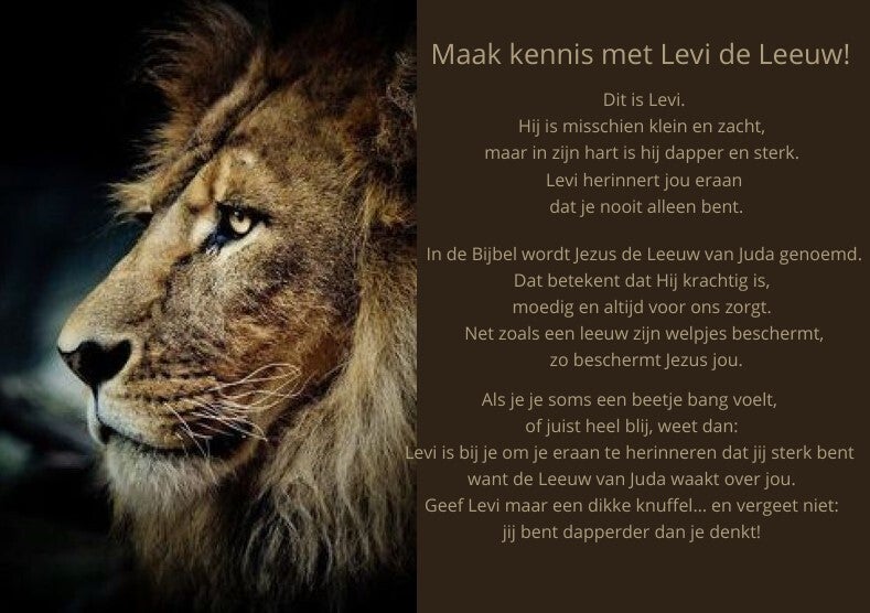 Deze lieve Leeuw is 100% handgemaakt door Studio W&E. Hij is heerlijk zacht. Zittend heeft hij een lengte van 22 centimeter. Als je Levi bestelt krijg je er ook een mooi verhaaltje bij! Wassen op maximaal 40 graden, niet in de droger.