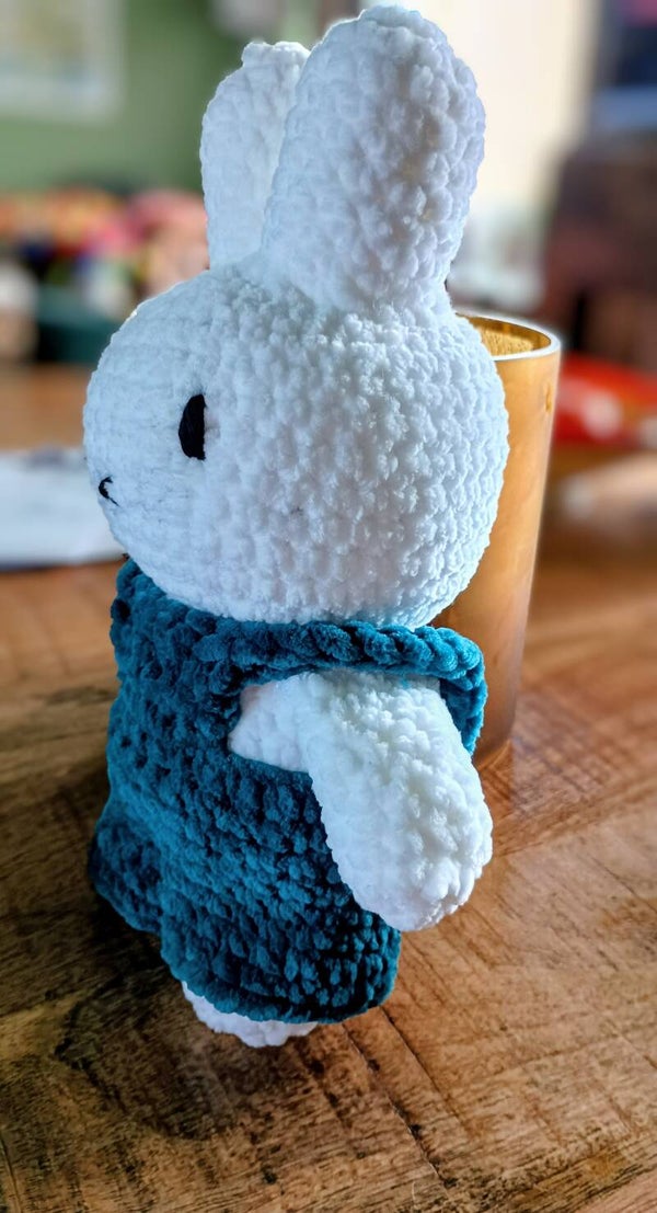 Dit lieve Nijntje is 100% handgemaakt door Studio W&E. Hij is heerlijk zacht. Deze knuffel heeft een lengte van ongeveer 22 centimeter. Als je Nijntje David bestelt krijg je er ook een mooi verhaaltje bij! Wassen op maximaal 40 graden, niet in de droger.